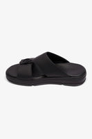 UOMO CAVALIER MENS LIGHT WEIGHT MATT LEATHER SANDAL BLACK