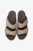 Step into sophistication with Uomo Cavalier Arabic Sandals, made with thorough attention to detail. These leather sandals feature a stylish strap design that enhances both comfort and elegance. They are also perfect for casual outings or semi-formal events. They are made from high-quality materials, like cushioned insole and PU outsole, to ensure durability, comfort, and a luxurious feel. They are available in beige.